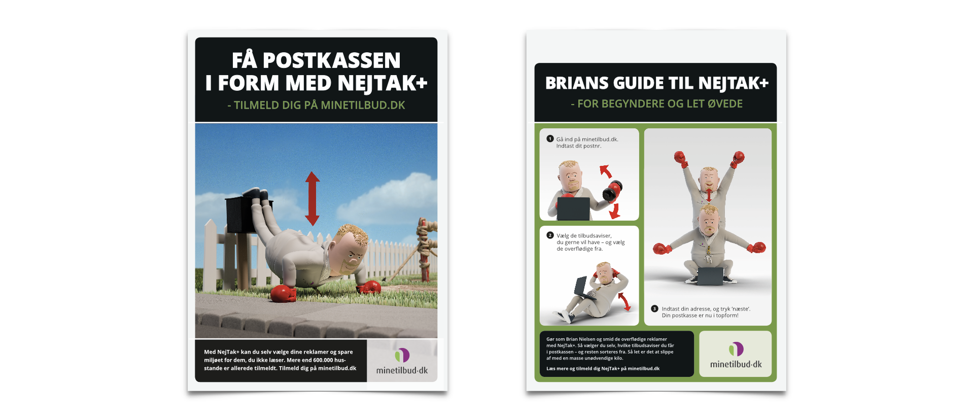 I Danmark uddeles der hvert år mere end 2,4 mia. husstandsomdelte reklamer, men i de seneste år har flere og flere valgt at sige nej tak til reklamer. For at stoppe udviklingen valgte FK Distribution at lancere alternativet NejTak+. Med den ordning kunne forbrugerne selv vælge deres reklamer og afmelde dem, de alligevel ikke læser. Herunder er eksempler på kampagner der er kørt.