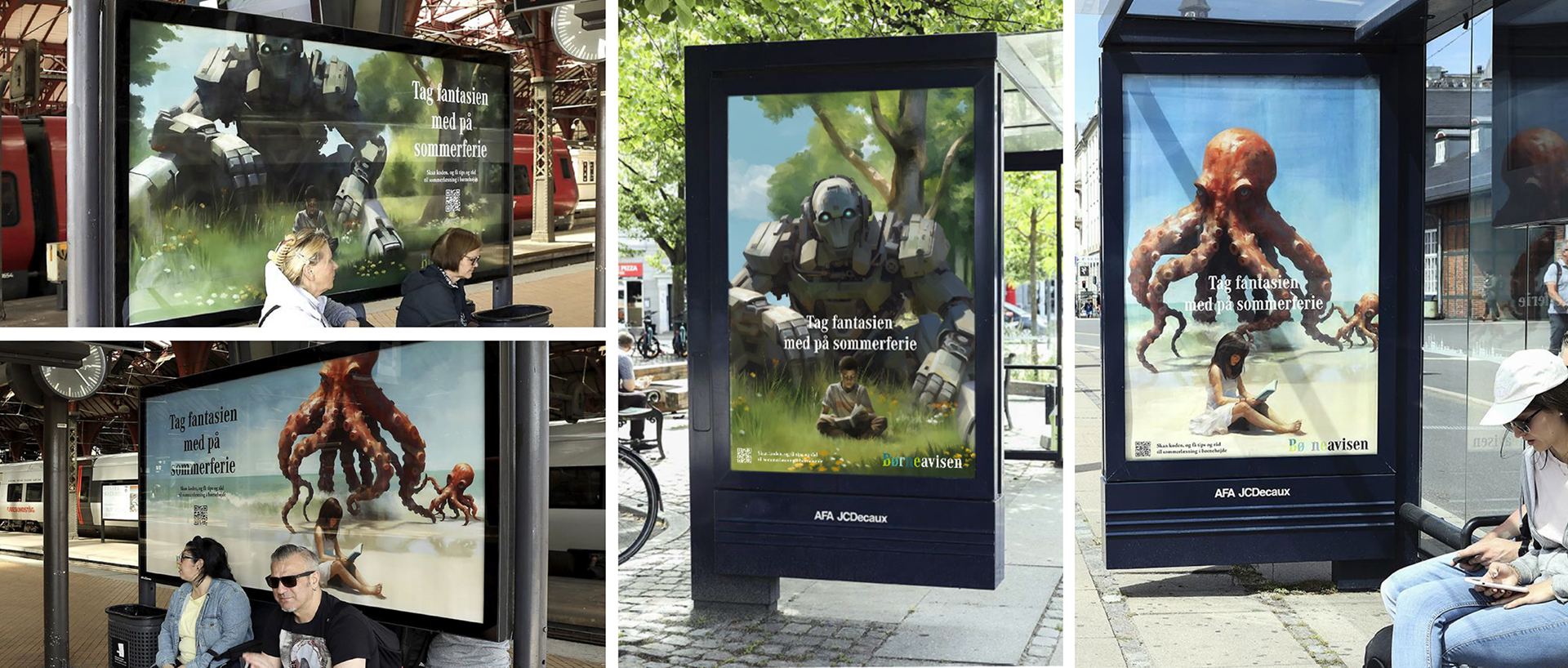 Børns læseevner daler. Det vil Børneavisen gøre noget ved. Og vi ved at der er større chance for at børn læser, når de er på ferie. Så vi bruger bøgernes fantastiske evne til at aktivere fantasien. Få forældre til at scanne en QR kode, og blive inspireret til bøger for børn på ferien